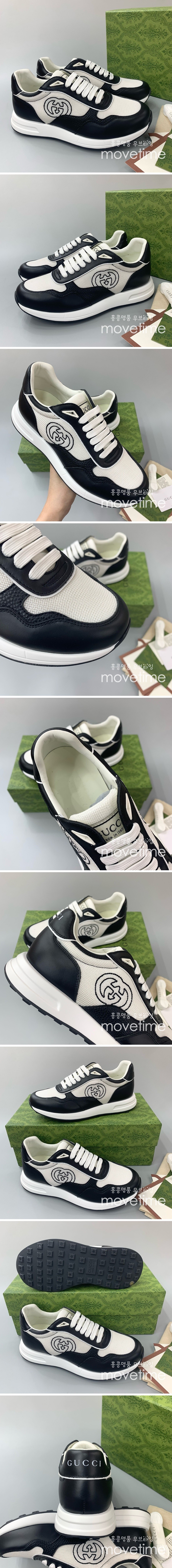 • [홍콩명품.Gucci] 구찌 24SS 로고 GG 레더 가죽 스니커즈 운동화 (블랙-화이트), SE3401, PMD, 명품스니커즈,운동화,구두,로퍼,하이탑,신발