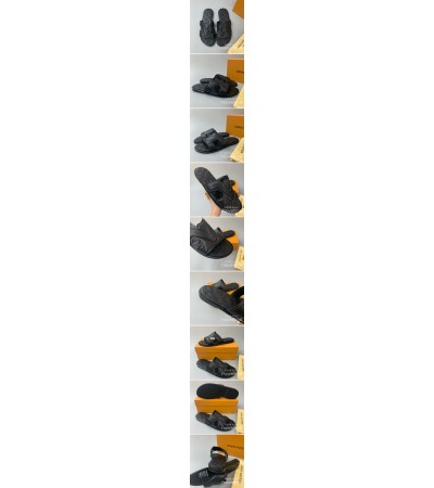 • [홍콩명품.LOUIS VUITTON] 루이비통 24SS 로고 모노그램 레더 가죽 샌들 슬리퍼 (블랙), SE3404, PMD, 명품스니커즈,운동화,구두,로퍼,하이탑,신발