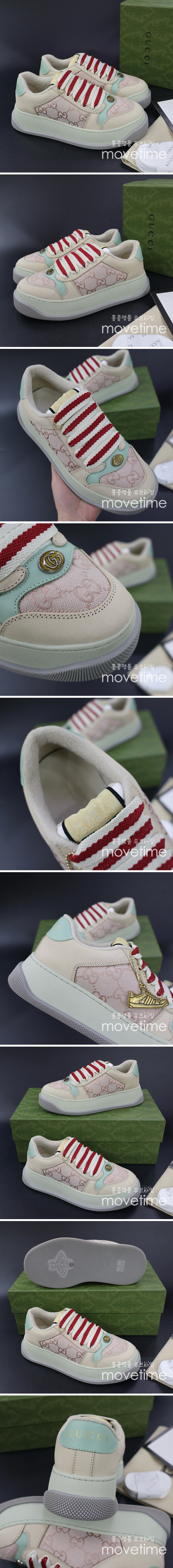 • [홍콩명품.Gucci] 구찌 24SS 로고 여성 스크리너 레더 가죽 스니커즈 운동화 (핑크), SE3418, PMD, 명품스니커즈,운동화,구두,로퍼,하이탑,신발