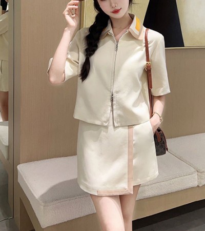 • [홍콩명품,FENDI] 펜디 24SS 로고 여성 반팔 셔츠 자켓 + 미니 스커트 상하의 세트 (베이지), BM14481, TBG, 홍콩명품의류,구매대행,온라인명품