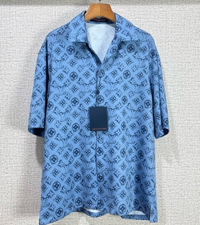 • [홍콩명품.LOUIS VUITTON] 루이비통 24SS 로고 패턴 반팔 남방 셔츠 (블루), BM13841, S1F, 홍콩명품의류,구 매대행,온라인명품