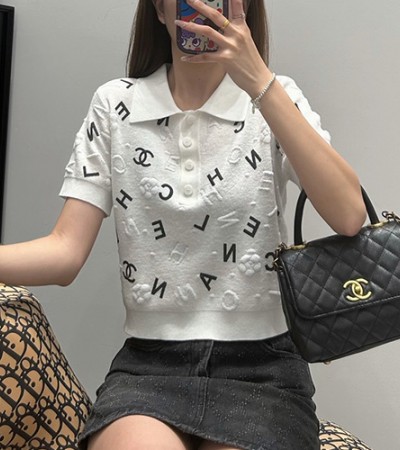 [홍콩명품.CHANEL] 샤넬 24SS 로고 패턴 여성 쇼트 폴로 니트 반팔 티셔츠 (2컬러), BM14698, TBG, 홍콩명품의류,구매대행,온라인명품 요약정보 및 구매