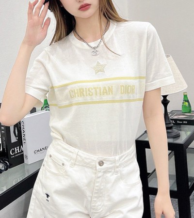• [홍콩명품,Christian Dior] 디올 24SS 로고 여성 스트라이프 니트 반팔 티셔츠 (2컬러), BM14804, TBG, 홍콩명품의류,구매대행,온라인명품