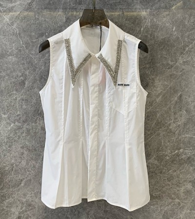 [홍콩명품,MIU MIU] 미우미우 24SS 로고 여성 슬리브리스 셔츠 (화이트), BM14887, TBG, 홍콩명품의류,구매대행,온라인명품 > 여성몰