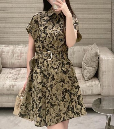 • [홍콩명품,Christian Dior] 디올 24SS 로고 여성 버터플라이 패턴 셔츠 원피스 (베이지), BM14897, TBG, 홍콩명품의류,구매대행,온라인명품