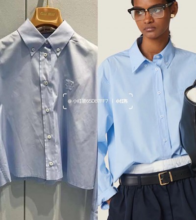 • [홍콩명품,MIU MIU] 미우미우 24SS 로고 자수 여성 쇼트 남방 셔츠 (스카이블루), BM14935, SG, 홍콩명품의류,구매대행,온라인명품