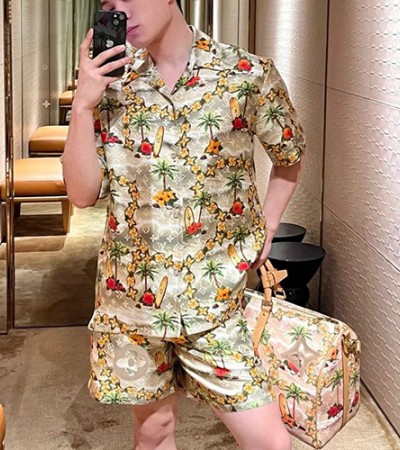 [홍콩명품.LOUIS VUITTON] 루이비통 24SS 로고 모노그램 플라워 패턴 반팔 남방 셔츠 + 쇼츠 반바지 상하의 세트 (베이지), BM14996, KB, 홍콩명품의류,구매대행,온라인명품 > 남자의류