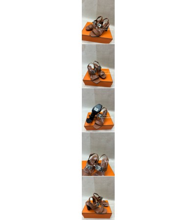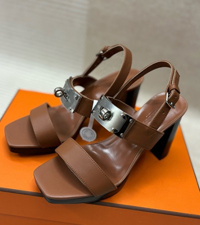 • [홍콩명품.Hermes] 에르메스 24SS 로고 여성 MAXI KELLY 레더 가죽 힐 슬리퍼 샌들 (브라운), SE3721, H3, 명품스니커즈,운동화,구두,로퍼,하이탑,신발
