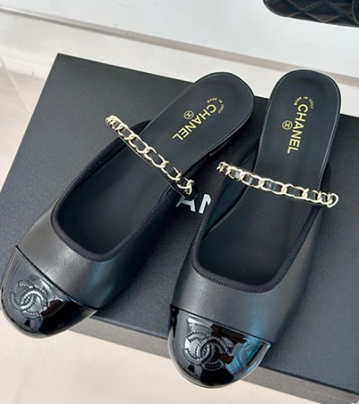• [홍콩명품.CHANEL] 샤넬 24SS 로고 여성 2톤 뮬 샌들 구두 (블랙), SE3765, ALW, 명품스니커즈,운동화,구두,로퍼,하이탑,신발