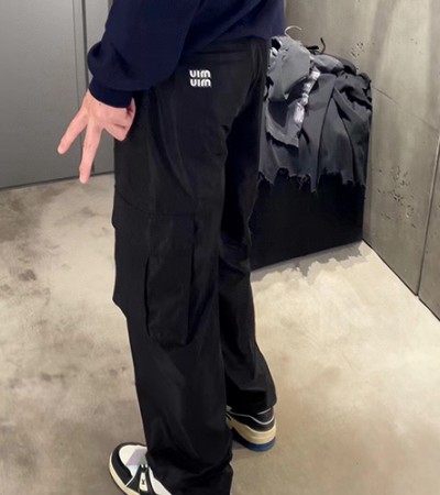 [홍콩명품,MIU MIU] 미우미우 24SS 로고 나일론 카고 팬츠 바지 (블랙), BM15128, JU, 홍콩명품의류,구매대행,온라인명품 > 남자의류