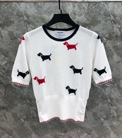 [홍콩명품.THOME BROWNE] 톰브라운 24SS 로고 여성 헥터 쇼트 니트 반팔 티셔츠 (3컬러), BM15255, TB1, 홍콩명품의류,구매대행,온라인명품 요약정보 및 구매