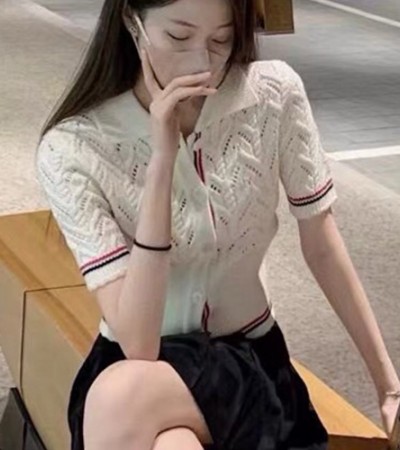 • [홍콩명품.THOME BROWNE] 톰브라운 24SS 로고 여성 카라 반팔 니트 가디건 (2컬러), BM15266, TB1, 홍콩명품의류,구매대행,온라인명품