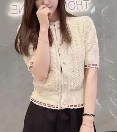 • [홍콩명품.THOME BROWNE] 톰브라운 24SS 로고 여성 라운드넥 반팔 니트 가디건 (2컬러), BM15267, TB1, 홍콩명품의류,구매대행,온라인명품