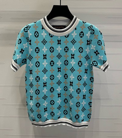 • [홍콩명품.LOUIS VUITTON] 루이비통 24SS 로고 모노그램 여성 니트 반팔 티셔츠 (스카이블루), BM15276, TBG, 홍콩명품의류,구매대행,온라인명품