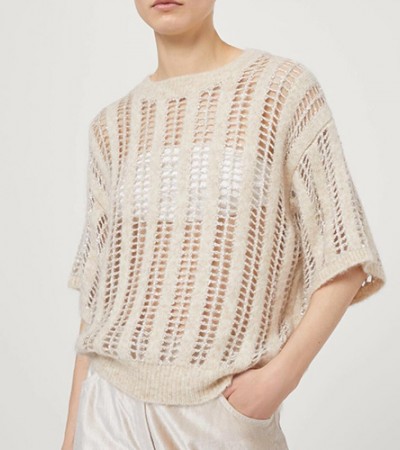 [홍콩명품.Brunello Cucinelli ] 브루넬로쿠치넬리 24SS 로고 여성 라운드넥 니트 반팔 티셔츠 (베이지), BM15280, TBG, 홍콩명품의류,구매대행,온라인명품 > 여성몰