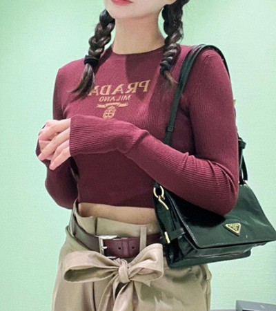 • [홍콩명품,PRADA] 프라다 24SS 로고 여성 슬림핏 니트 스웨터 (레드), BM15289, TBG, 홍콩명품의류,구매대행,온라인명품
