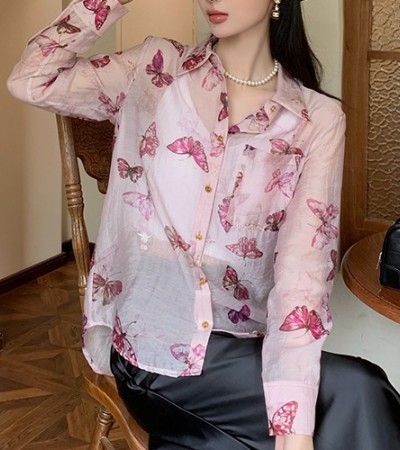 [홍콩명품,Christian Dior] 디올 24SS 로고 여성 버터플라이 패턴 시스루 린넨 블라우스 셔츠 (2컬러), BM15298, TBG, 홍콩명품의류,구매대행,온라인명품 > 여성몰