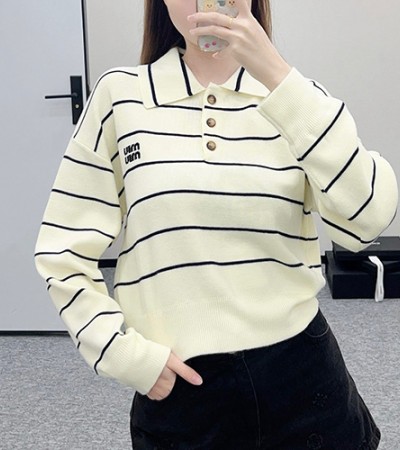 [홍콩명품,MIU MIU] 미우미우 24SS 로고 여성 스트라이프 카라 니트 스웨터 (2컬러), BM15593, TBG, 홍콩명품의류,구매대행,온라인명품 > 여성몰