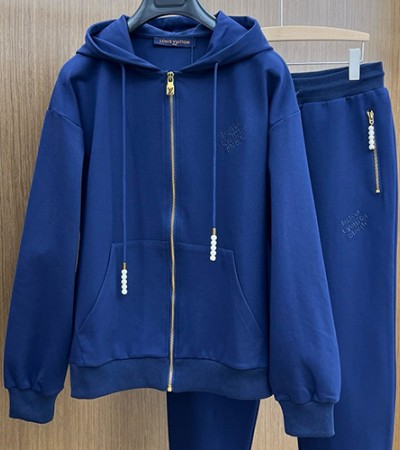 [홍콩명품.LOUIS VUITTON] 루이비통 24SS 로고 후드 집업 자켓 + 조거 팬츠 바지 상하의 세트 (블루), BM15629, JS, 홍콩명품의류,구매대행,온라인명품 요약정보 및 구매