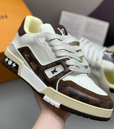 [홍콩명품.LOUIS VUITTON] 루이비통 24SS 로고 다미에 남여 트레이너 스니커즈 운동화 (화이트-브라운), SE3975, PMD, 명품스니커즈,운동화,구두,로퍼,하이탑,신발 > 신발