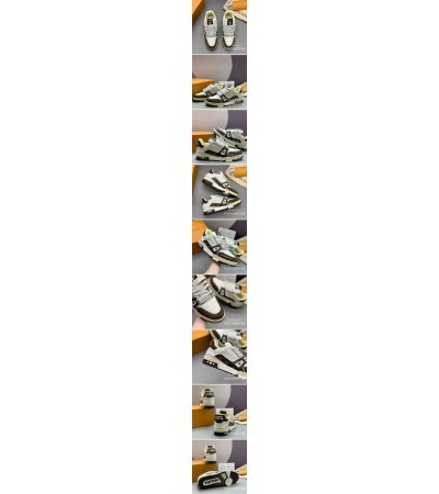 • [홍콩명품.LOUIS VUITTON] 루이비통 24SS 로고 다미에 남여 트레이너 스니커즈 운동화 (화이트-브라운), SE3975, PMD, 명품스니커즈,운동화,구두,로퍼,하이탑,신발