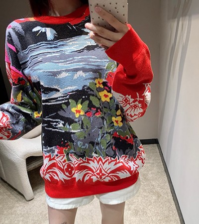 [홍콩명품.LOUIS VUITTON] 루이비통 23SS 로고 그래픽 여성 오버핏 니트 스웨터 (레드), BM15716, TBG, 홍콩명품의류,구매대행,온라인명품 > 여성몰