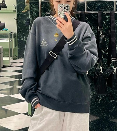 [홍콩명품,PRADA] 프라다 24SS 로고 프린트 여성 빈티지 오버핏 맨투맨 티셔츠 (네이비), BM15720, TBG, 홍콩명품의류,구매대행,온라인명품 > 여성몰
