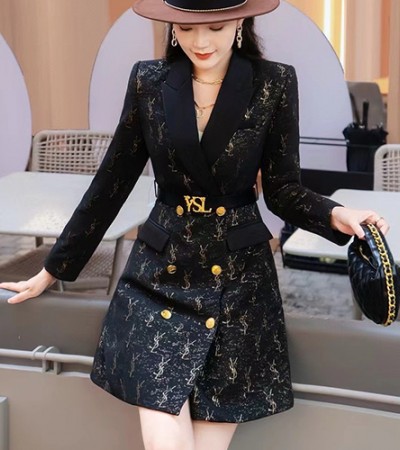 • [홍콩명품.YSL] 입생로랑 24SS 로고 여성 YSL 벨티드 코트 (블랙), BM15865, BR, 홍콩명품의류,구매대행,온라인명품