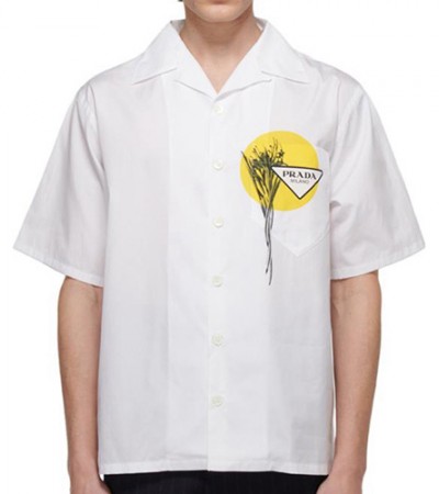 [홍콩명품,PRADA] 프라다 24SS 로고 그래픽 프린트 반팔 남방 셔츠 (화이트), BM15917, JU, 홍콩명품의류,구매대행,온라인명품 > 남자의류