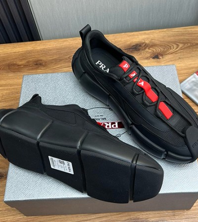 • [홍콩명품,PRADA] 프라다 24SS 로고 레더 가죽 스니커즈 운동화 (블랙), SE4071, S2, 명품스니커즈,운동화,구두,로퍼,하이탑,신발