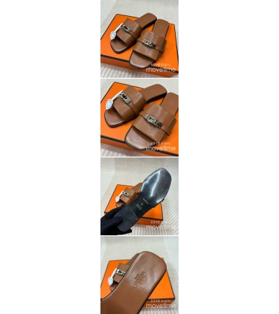 [홍콩명품.Hermes] 에르메스 24SS 로고 여성 KELLY 레더 가죽 샌들 슬리퍼 (브라운), SE4084, H3, 명품스니커즈,운동화,구두,로퍼,하이탑,신발 > 여성몰