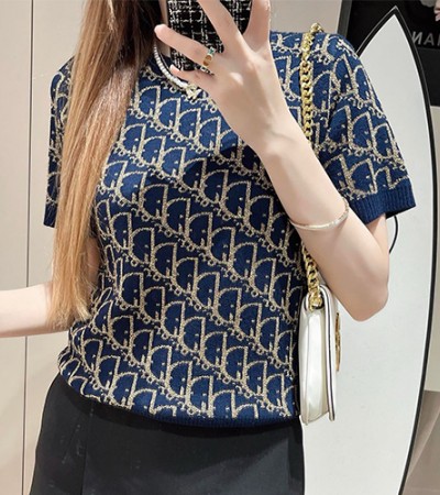 • [홍콩명품,Christian Dior] 디올 24SS 로고 오블리크 여성 니트 반팔 티셔츠 (네이비), BM15983, TBG, 홍콩명품의류,구매대행,온라인명품