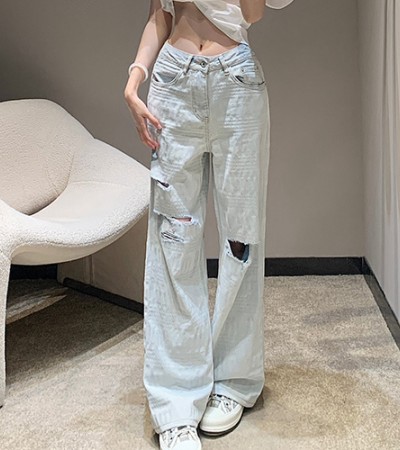 [홍콩명품,MIU MIU] 미우미우 24SS 로고 여성 패턴 코튼 빈티지 오버핏 데님 팬츠 진 청바지 (연청), BM16087, BR, 홍콩명품의류,구매대행,온라인명품 > 여성몰