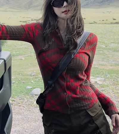 • [홍콩명품.Burberry] 버버리 24SS 로고 패턴 여성 라운드넥 니트 가디건  (레드), BM16125, BR, 홍콩명품의류,구매대행,온라인명품