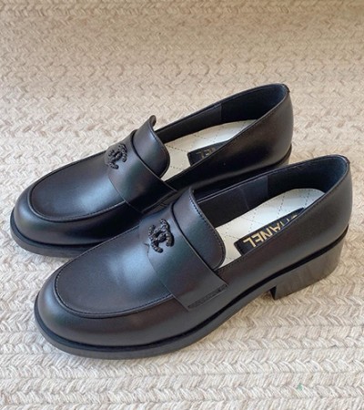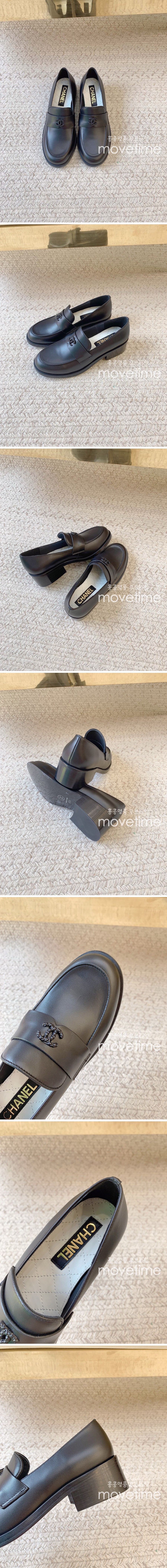 • [홍콩명품.CHANEL] 샤넬 24SS 로고 여성 레더 가죽 굽 구두 로퍼 (블랙), SE4120, ALW, 명품스니커즈,운동화,구두,로퍼,하이탑,신발