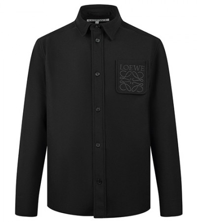 • [홍콩명품.LOEWE] 로에베 24SS 로고 자수 울 남방 셔츠 (블랙), BM16188, JU, 홍콩명품의류,구매대행,온라인명품