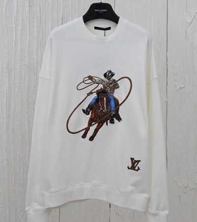 [홍콩명품.LOUIS VUITTON] 루이비통 24SS 로고 그래픽 자수 맨투맨 티셔츠 (화이트), BM16197, JU, 홍콩명품의류,구매대행,온라인명품 > 남자의류
