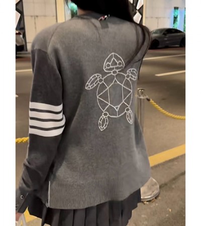 • [홍콩명품.THOME BROWNE] 톰브라운 24SS 로고 4바 V넥 니트 가디건 (그레이), BM16356, TB1, 홍콩명품의류,구매대행,온라인명품