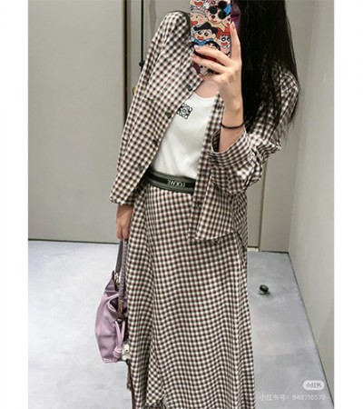[홍콩명품.LOEWE] 로에베 24SS 로고 여성 체크 패턴 남방 셔츠 + 미디 스커트 상하의 세트, BM16453, TBG, 홍콩명품의류,구매대행,온라인명품 > 여성몰