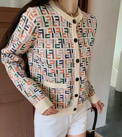 • [홍콩명품,FENDI] 펜디 24SS 로고 FF패턴 여성 라운드넥 니트 가디건 (아이보리), BM16468, TBG, 홍콩명품의류,구매대행,온라인명품