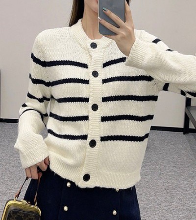 • [홍콩명품,Christian Dior] 디올 24SS 로고 여성 스트라이프 라운드넥 니트 가디건 (화이트), BM16469, TBG, 홍콩명품의류,구매대행,온라인명품