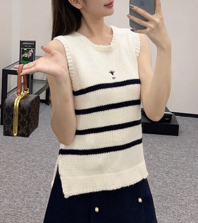 • [홍콩명품,Christian Dior] 디올 24SS 로고 여성 스트라이프 니트 탑 (화이트), BM16470, TBG, 홍콩명품의류,구매대행,온라인명품
