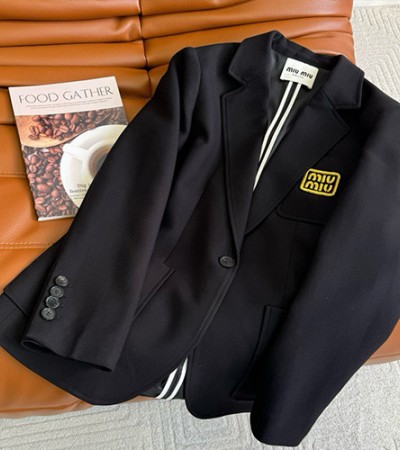 • [홍콩명품,MIU MIU] 미우미우 24SS 로고 자수 여성 정장 수트 자켓 (블랙), BM16527, DT, 홍콩명품의류,구매대행,온라인명품