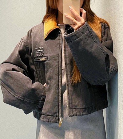 [홍콩명품,MIU MIU] 미우미우 24SS 로고 여성 데님 카라 자켓 (그레이), BM16532, DT, 홍콩명품의류,구매대행,온라인명품 > 여성몰