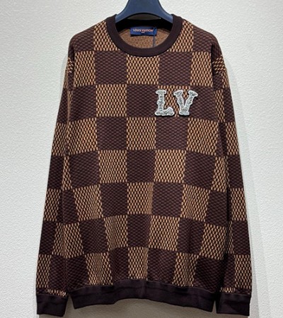 • [홍콩명품.LOUIS VUITTON] 루이비통 24SS 로고 다미에 맨투맨 티셔츠 (브라운), BM16651, KB, 홍콩명품의류,구매대행,온라인명품