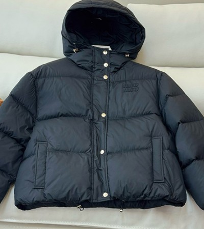 • [홍콩명품,MIU MIU] 미우미우 24SS 로고 자수 여성 구스다운 후드 패딩 자켓 (2컬러), BM16803, KSM, 홍콩명품의류,구매대행,온라인명품