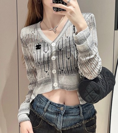 • [홍콩명품.CHANEL] 샤넬 24SS 로고 여성 시스루 V넥 쇼트 니트 가디건 (2컬러), BM16812, TBG, 홍콩명품의류,구매대행,온라인명품