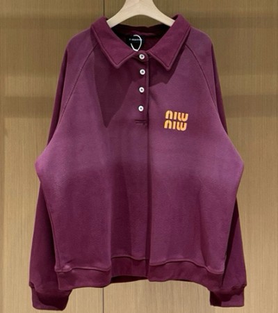 [홍콩명품,MIU MIU] 미우미우 24SS 로고 프린트 워싱 맨투맨 티셔츠 (와인), BM16889, TOP, 홍콩명품의류,구매대행,온라인명품 > 남자의류