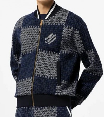 • [홍콩명품.LOUIS VUITTON] 루이비통 24SS 로고 다미에 니트 집업 자켓 (네이비), BM16914, JU, 홍콩명품의류,구매대행,온라인명품