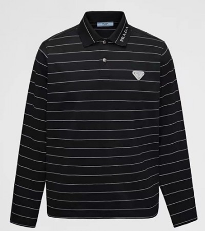 [홍콩명품,PRADA] 프라다 24SS 삼각로고 스트라이프 카라 폴로 긴팔 티셔츠 (블랙), BM16923, JU, 홍콩명품의류,구매대행,온라인명품 > 남자의류